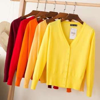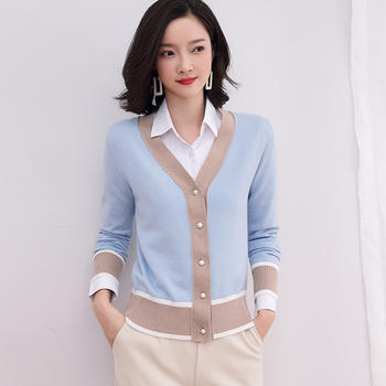 Women Contrast Color V Neck Long Sleeve Cardigan