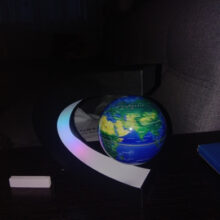 The parcel was received 10 days later than it was stated. Despite the fact that the box is a little wrinkled, the lamp itself works fine. I expected of course that it will shine a little brighter, but nevertheless very cool and unusual. The Earth is in a suspended state, as if a miracle! Included lamp, Globe, socket plug and special auxiliary piece to let it levitate