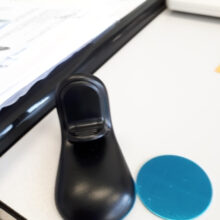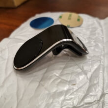 Two plates are included. Holds very tight. However, a short clothespin, does not fully capture the ventreble because of this, the phone is removed together with the holder