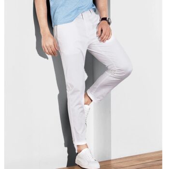 Mens Casual Pants High Stretch Elastic Pocket Badge Trousers