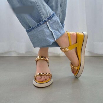 Leather Sandals Yellow White Women Summer Shoes Ankle Strap 5.5cm
