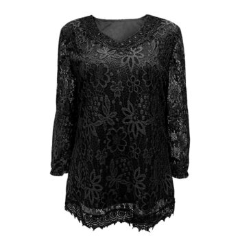 Womens Plus Size Elegant Floral T Shirt Sort And Long Sleeves