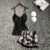 Women Silk Chest Pads Flower Print Sleepwear 4 Pieces
